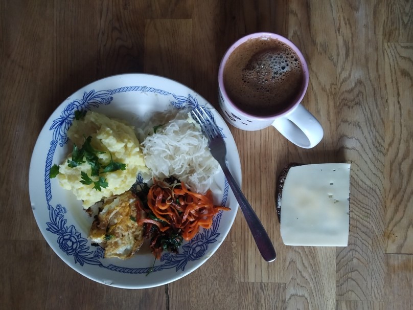 olen olnud mitu nädalat kergelt nohune ja köhinud, terve meie korter on, igaks juhuks lihtsalt katan väljas aevastades suu salliga, puhastan kodus käsi ja üritan tervemaks saada. söön rohkem vitamiine kui varem. kodus on nii palju toitu, sest eks ka mul tärkas sellel veidral 13 ja reedel mingi suurem ja ürgsem alalhoiuinstinkt ja varusin hoogsalt (ei, ma ei hakka siinkohal end õigustama, et mul oligi vaja praegu tatart ja makarone ja seda ja toda ja kolmandat osta, ma niikuinii läksin poodi jne, eieiei ma ikka üsna teadlikult täitsin kapi nii, et pikemat aega ei peaks poodi minema, varu on hea niikuinii). kahjuks või õnneks pole ma juba pikka aega väga jõukas olnud, nii et vähesega elamine tuleb tegelikult päris hästi välja. kuigi eks ikka teeb veidi meele mõruks, et kinni on nii töökoht, näitus kui ka kool. eile tuligi teade, et üks õppejõud on koroonas. oeh. ausalt öeldes on tekkinud kerge pohmell kogu sellest eelmise nädala lõpu ärevusest. ei jaksa enam pingekruvimisega kaasa õõtsuda, tahaks lihtsalt selle nihkega kuidagi vaikselt harjuda.