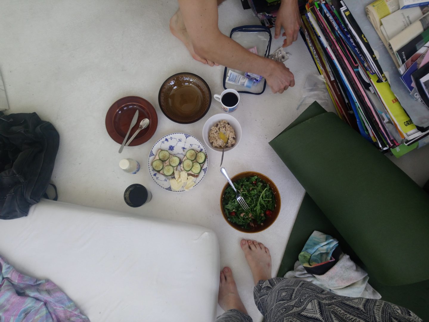 Kuuenda kuu lõpus, viimasel nädalal, läheb Marta reisile, ning saan selle koduga täiesti üksi hüvasti jätta. Ühel pärastlõunal panen Луна mängima ja keeran puusad diivaniga risti, vajun õlad ees põrandale, ajan jalad üles köögikapile, teen tagurpidi kukerpalli ja tõusen püsti, virutan käed vastu põrandat, ajan selja sirgu, virutan käed vastu põrandat …