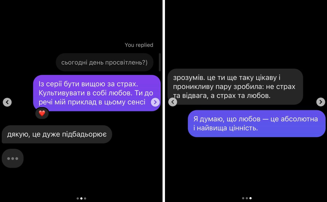 Iga teine sõnumivestlus M-iga lõppeb hüüumärgisajuga: me ei taha rohkem vägivalda, me ei taha sõda, me oleme küllalt näinud! Aga me mõlemad teame, et just seepärast peamegi võitlust jätkama.