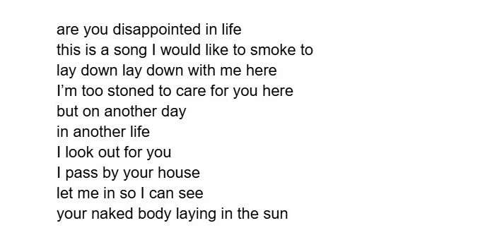 panen maha trennimati ja leban sinna peale tunnen kuidas mu selgroolülid on halvasti mõtlen et kui ma oma toa ukse lahti jätan siis nad mõtlevad oo see teeb joogat ma ei taha et nad nii mõtleks ma tahaks et nad mõtleks et ma olen nagu nemad ma tahaks et nad küsiks what are you going to do on friday nice shirt can i borrow it hey do you want a hit hey is this your cheese i ate it sorry hey come here i wanna show you something